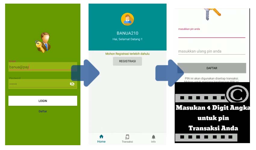 Untuk melakukan segala macam kegiatan transaksi, terlebih dahulu aplikasi Banua-Pay sudah harus terinstall/ terpasang pada Handphone. Jika belum memilikinya, anda dapat mengunduh/ mendownload aplikasinya pada link berikut APK Banua-Pay